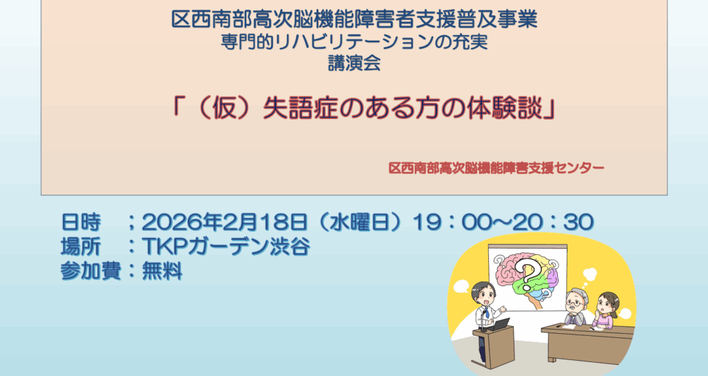 地域における高次脳機能障害の専門窓口となり、個別の相談支援、区、関係機関等の行う支援に対する助言および情報提供を行う。